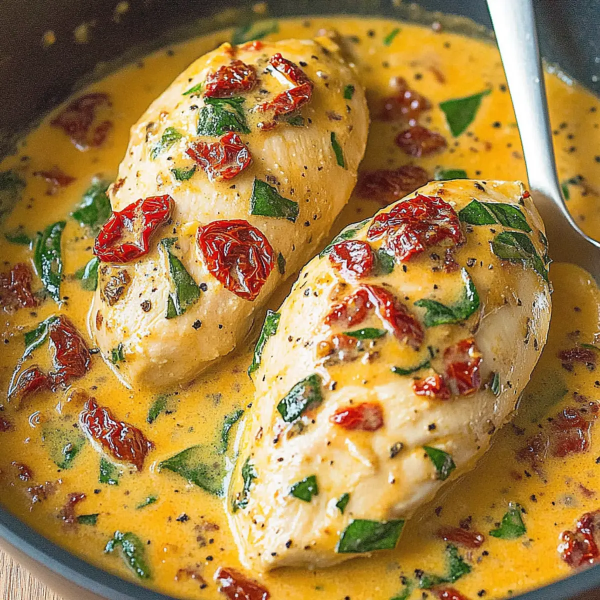 The moment you step into your kitchen, the rich, savory scent of Creamy Sun-Dried Tomato Chicken envelops you like a warm hug. This dish quickly became a favorite in my home—not just for its mouthwatering taste but also for its impressive simplicity. When you blend succulent chicken with a velvety sauce bursting with sun-dried tomatoes and fresh spinach, you’ve created a family-friendly comfort food masterpiece that’s perfect for any weeknight dinner. Not only does this recipe come together in under 30 minutes, but it also makes for a stunning centerpiece on your dinner table that will leave everyone asking for seconds. So, are you ready to elevate your dinner game with this irresistible culinary delight?