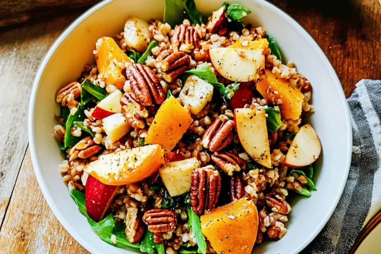 Vibrant autumn flavors: This Fall Farro Salad features the earthy sweetness of roasted butternut squash and the tart crunch of apples, creating a symphony of taste that embodies the season.