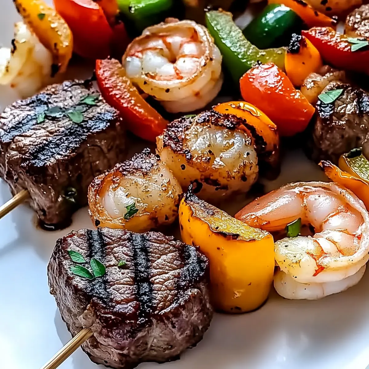 Prepare to enjoy these Grilled Steak and Shrimp Kabobs, brimming with flavors that will make your taste buds dance!