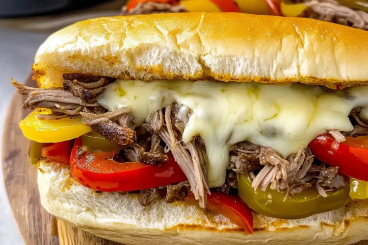 Once the cooking time is up, carefully remove the roast from the crock-pot using tongs or a slotted spoon. Let it cool briefly, then use two forks to shred the beef into bite-sized pieces. Return the shredded beef to the pot and mix it well with the remaining broth and peppers, ensuring that every morsel is moist and flavorful for your sandwiches.
