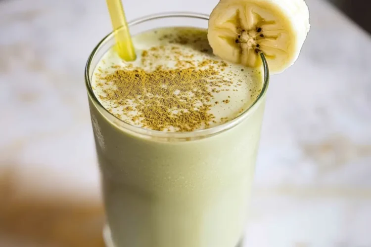 - Pour into a tall glass and serve immediately, optionally garnished with matcha or banana.