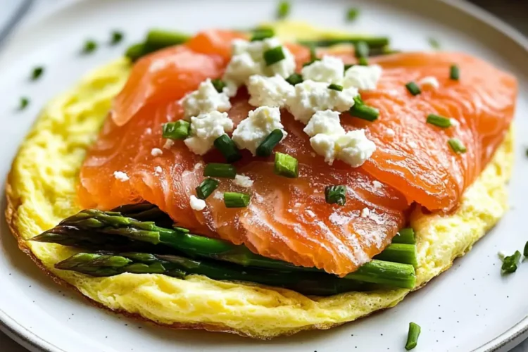 Savory Salmon Asparagus Goat Cheese Omelet in 20 Minutes