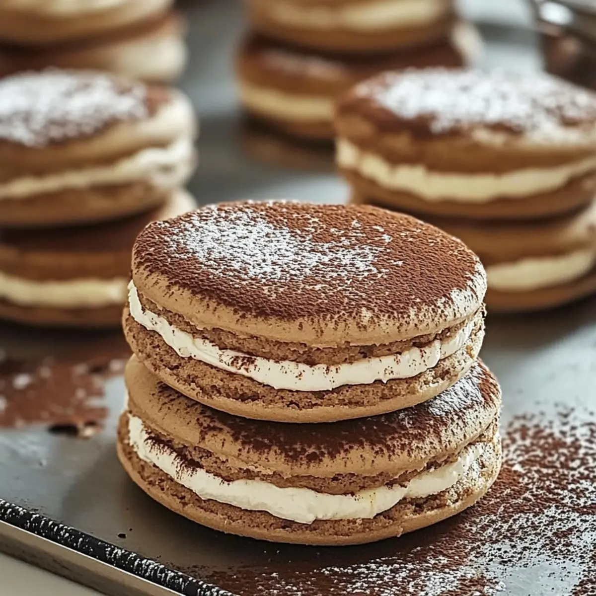 Finish your Tiramisu Sandwich Cookies by dusting them lightly with cocoa powder for an authentic touch. This finishing step not only enhances their appearance but also adds a rich flavor reminiscent of traditional tiramisu. Now they’re ready to be served and enjoyed!