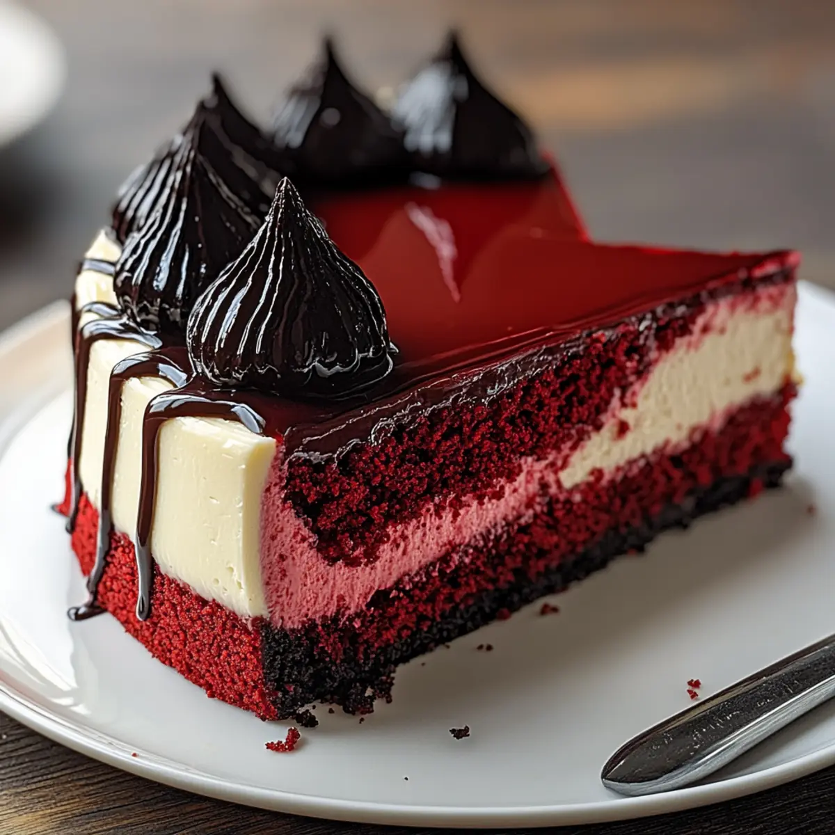 Eye-Catching Appearance: Its vibrant red hue and dark chocolate drizzle make it a stunning centerpiece for any dessert table, perfect for impressing guests.
