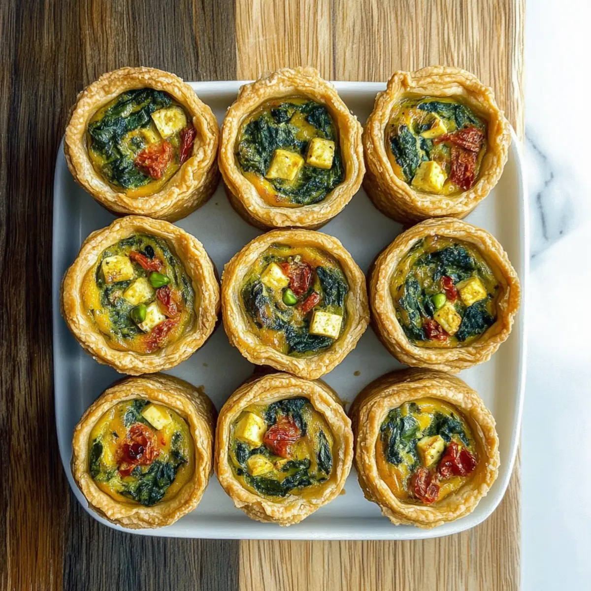 Place the muffin tin in your preheated oven and bake for 20–25 minutes. Check for a golden brown crust on the puff pastry, and allow the quiches to rise beautifully during baking. You’ll know they’re done when the tops are firm to the touch and have a lovely golden hue.